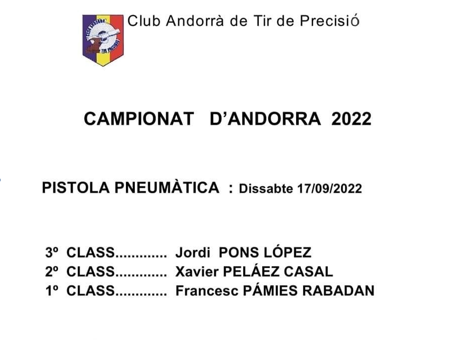 CAMPIONAT D’ANDORRA 2022 DE PISTOLA PNEUMÀTICA